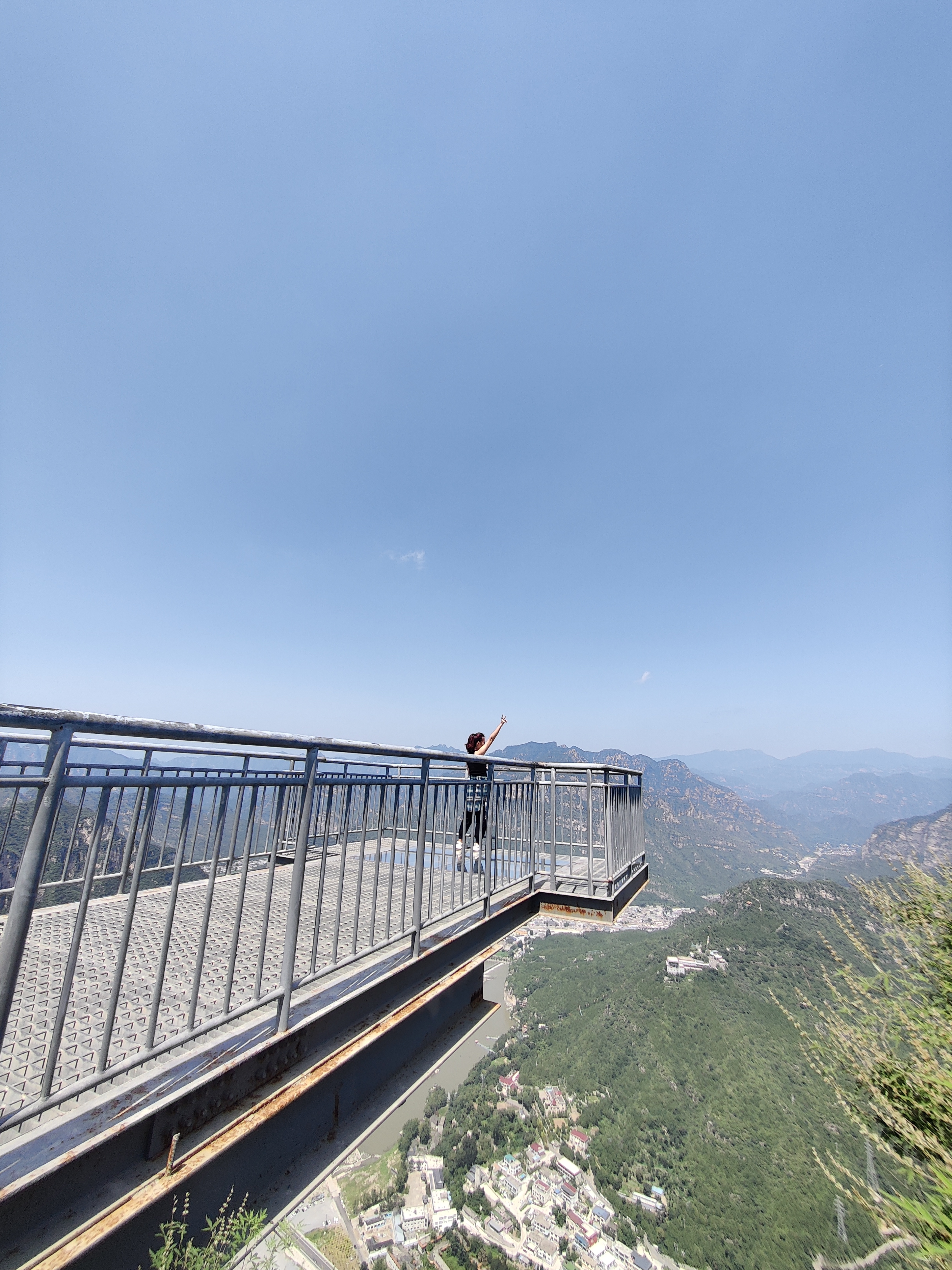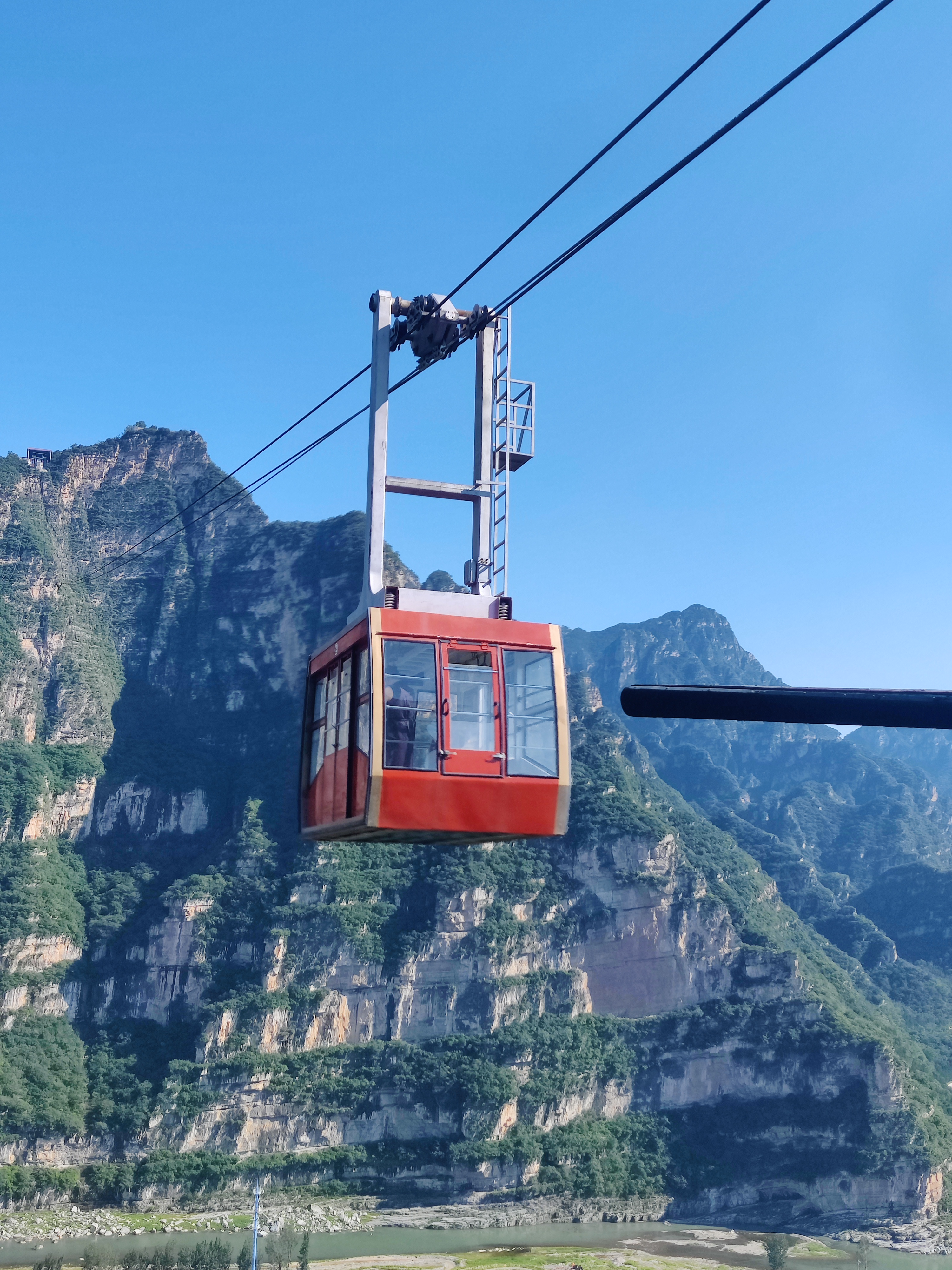 十渡的秋天从不是单调的观光,而是动静皆宜的沉浸式体验。想解锁“勇敢者的勋章”,拒马乐园的55米蹦极绝对是终极选择。站在悬挑的跳台上,脚下是秋波荡漾的拒马河,两岸是五彩山峦,纵身跃下的瞬间,秋风掠过耳畔,所有压力都随尖叫消散在山谷里。若想温和地俯瞰秋色,可乘坐空中客车直达南山观景台,凭栏远眺时,蜿蜒的河流与层叠的彩林构成一幅流动的山水画卷,随手一拍都是年度壁纸。