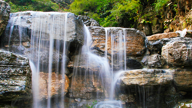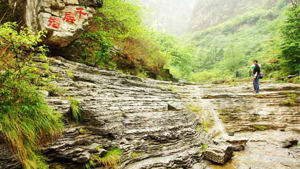 千层岩——据专家讲,这里原来是海滩,波浪过后,沙滩留下波纹,这是刚好一堆泥砂覆盖过来,保护了波纹的存在。沧海变桑田,大海如今变成了高山。当年的泥沙岩石被腐蚀掉后,波纹在现,形成了今日奇特的千层岩。有人形象地称它为“大自然的年轮”,称它“千层饼”也是十分贴切的。到这里,大家可以稍作休息,静静的聆听鸟叫声,听水流得潺潺声,闻花香、听鸟语,呼吸大自然的气息,您会有一种置身于世外桃源之感。抬头见山,弯腰是水…