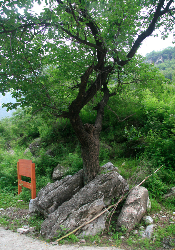 杏劈石------大家请看,这便是我刚才在故事里所讲到的那棵杏树了。今天我们看他如此茂盛的长在这里。可曾想到,数十年前,它在石缝中生根、长叶有多么艰难。小树长的越大。就越受到大石的挤压,为了生存,它只得在夹缝中吸取水分和营养,顽强的从石缝中长出来,不禁让人赞叹生命的力量真是伟大。