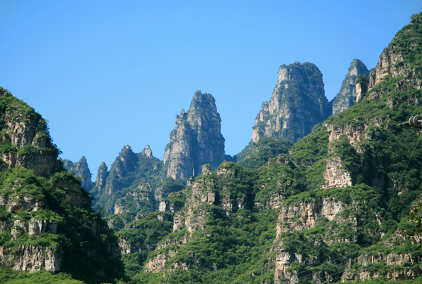 天柱峰-----这座耸立于云霄的山峰,人称天柱峰,因为它的雄奇健美,曾赢得诗人赞誉:巍巍擎天柱,美美一雄峰,南海有它影,十渡唤其名。登顶可摸云,四顾揽群峰;万景沟边立,目睹游客行(传说是孙悟空的金箍棒、遗于此地)