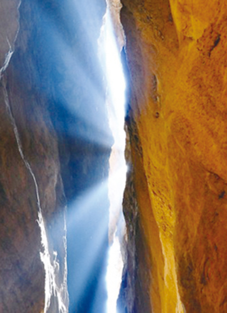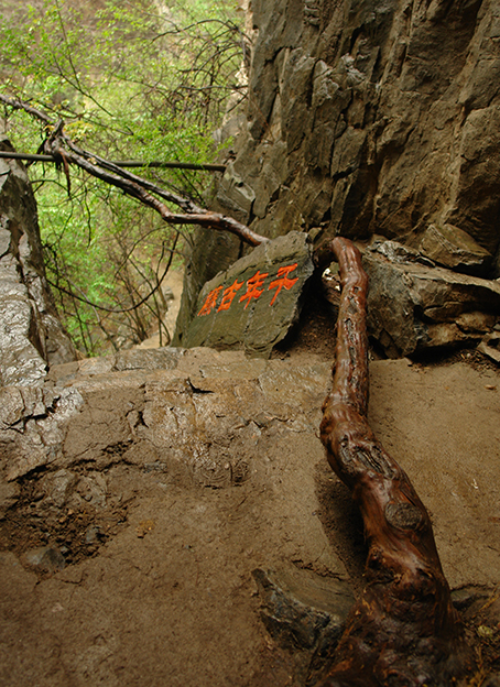 一线天 耸立的陡壁之中裂开的一条巨缝,其直立之处,如刀削斧砍一般,裂缝长约65米‘高约40—50米,宽约1—1.5米,最窄处仅有60厘米,信步于裂缝中,迎面吹来丝丝凉风,清爽宜人,一切劳累将随风而去,仔细观察两壁的岩石,由于雨水的渗入和侵蚀,造型奇特,千姿百态,美不胜收。 山的裂缝是一裂到底的,若是把裂缝中的石土清除除去,深不可测。
