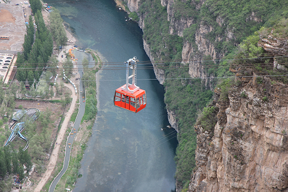 南山往复式索道由北京拒马娱乐有限公司投巨资,聘请北京起重运输机械设计研究院负责设计。是北京地区第一条往复式客运索道,最高运行速度8米/秒,单程中速运行3分钟,单箱牵引载客量30人/次,每小时运量400人次/单程。八渡南山索道北站海拔高程351.04米,南站海拔高程606.796米,高差255米,南站最高点距拒马河水面净空高度453米,跨度为1050米。